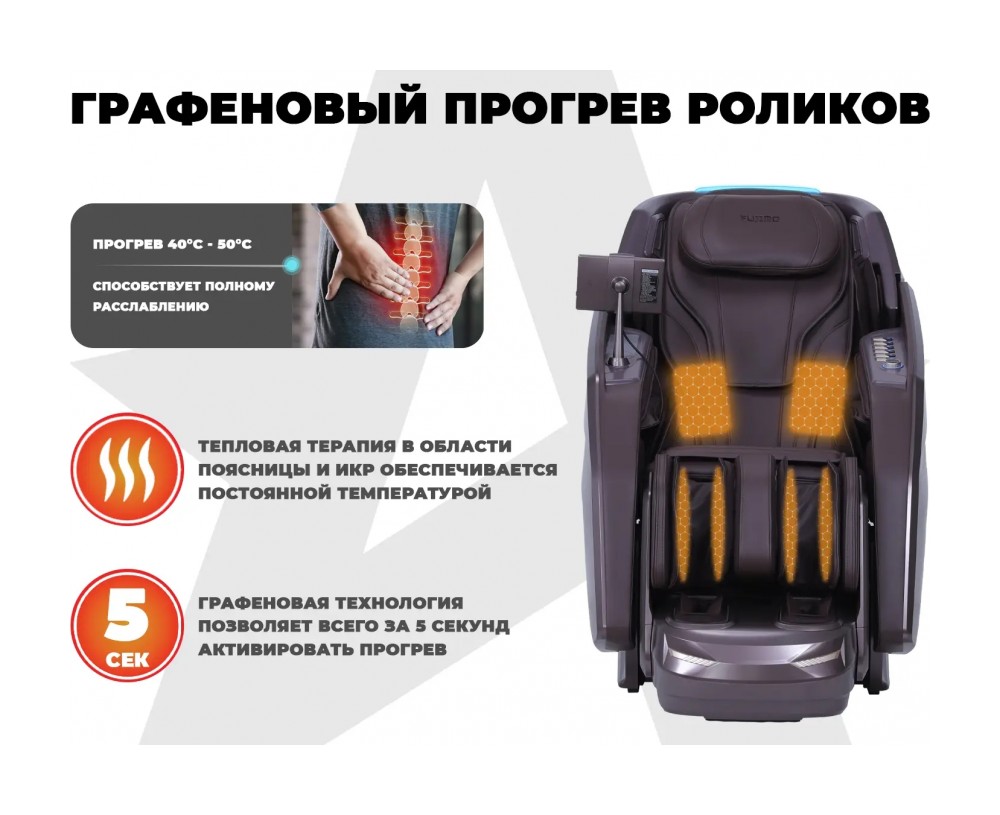 • Моментальный СПА прогрев икр и поясницы создается с использованием графеновой технологии