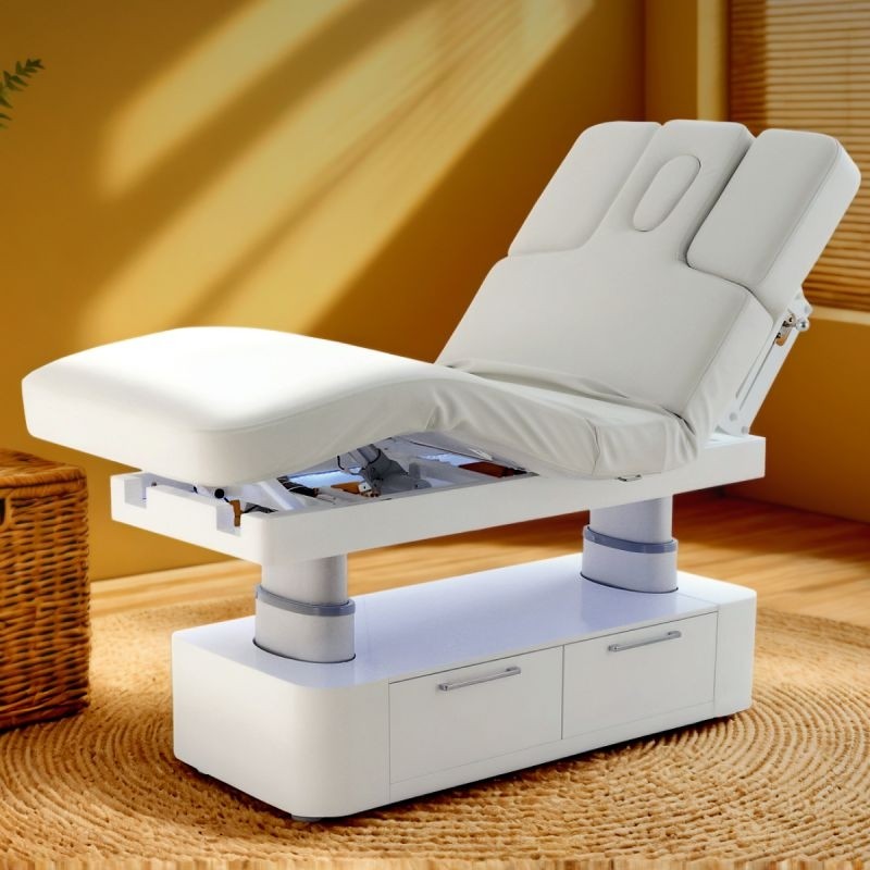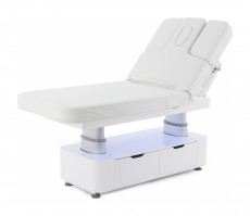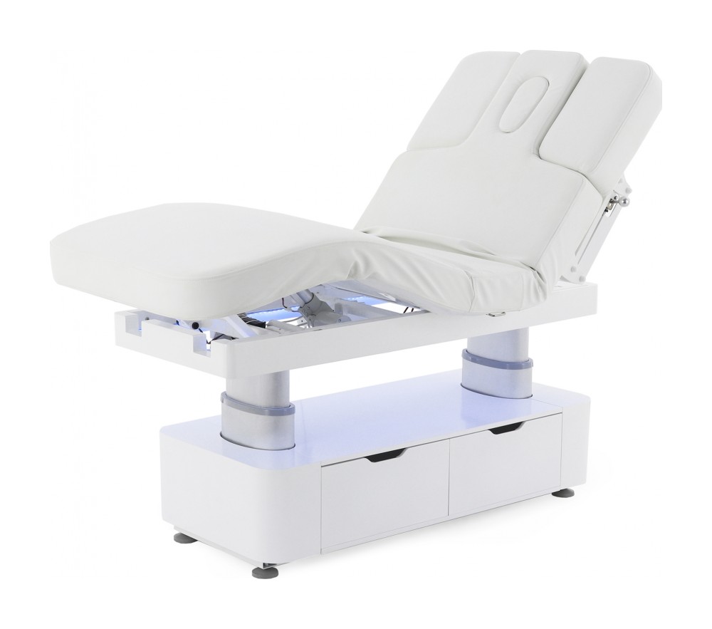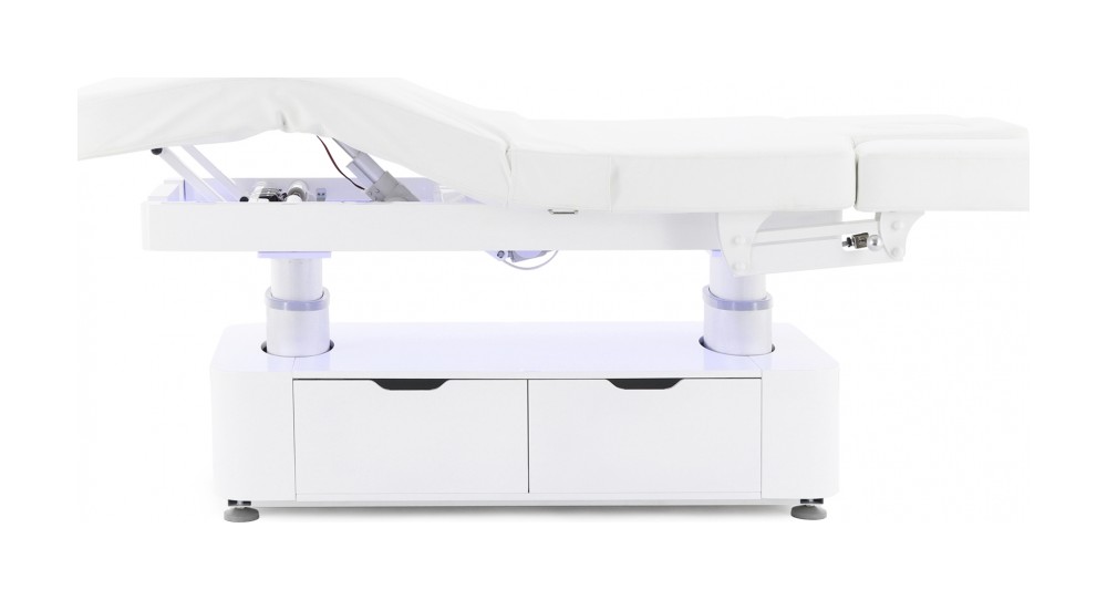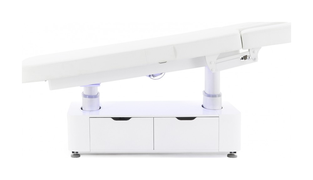 Этот массажный стол создан для профессионалов, которым важны надёжная конструкция, гибкая система регулировок и практичные элементы хранения. Благодаря телескопическим колоннам, нескольким электрическим приводам и декоративной подсветке он обеспечивает высокий уровень комфорта и удобства в использовании.