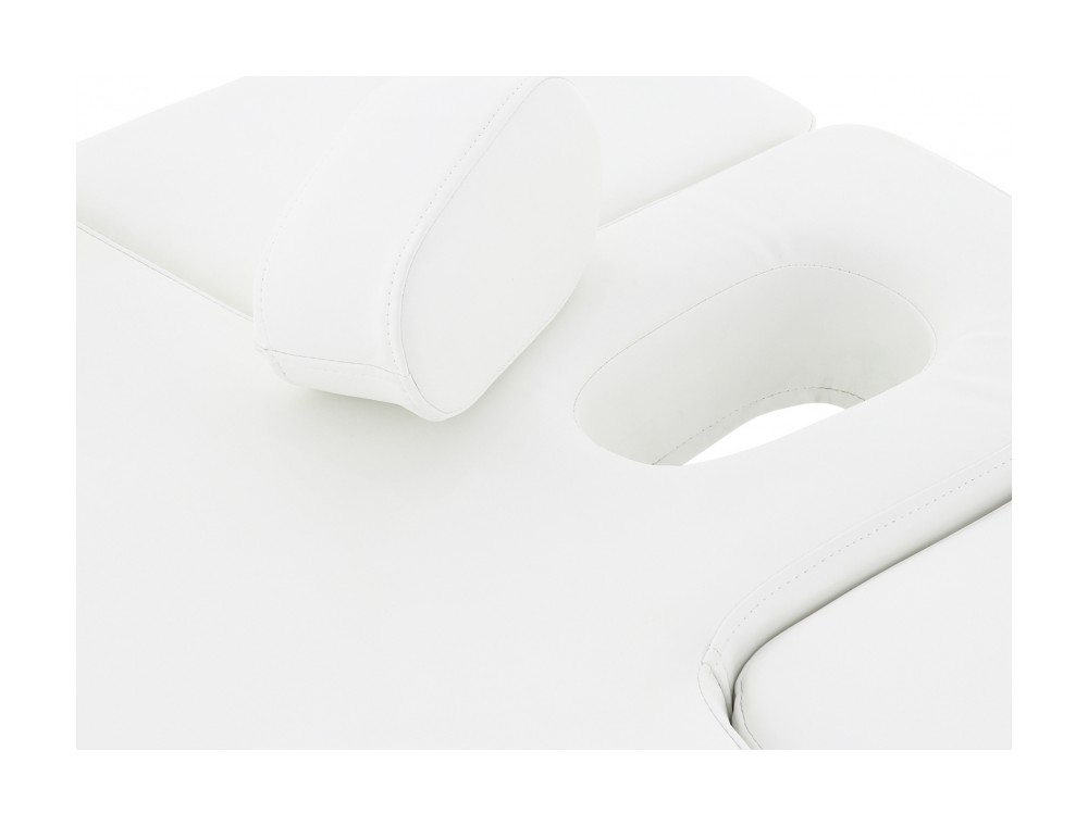 • Подлокотники регулируются по высоте, мягкое ложементное наполнение (10 см) и удобный люверс для лица улучшают впечатления от процедуры.