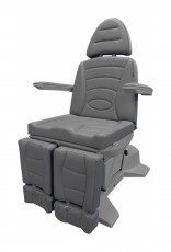 Педикюрное кресло оснащено пятью электромоторами, обеспечивающими регулировку высоты, наклона спинки, наклона сиденья и ножных опор. Кресло легко раскладывается в горизонтальное положение, образуя ровную поверхность. Надежная конструкция системы подъема обеспечивает высокую устойчивость кресла даже при максимальной высоте. Откидывающиеся подлокотники делают более удобным процесс посадки клиента. Управляется при помощи ручного проводного пульта.