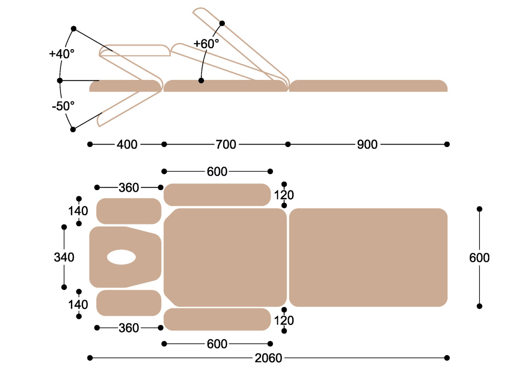 Массажный стол предназначен для классического массажа, косметологических и спа-процедур. Исполняется в одном цветовом решении: